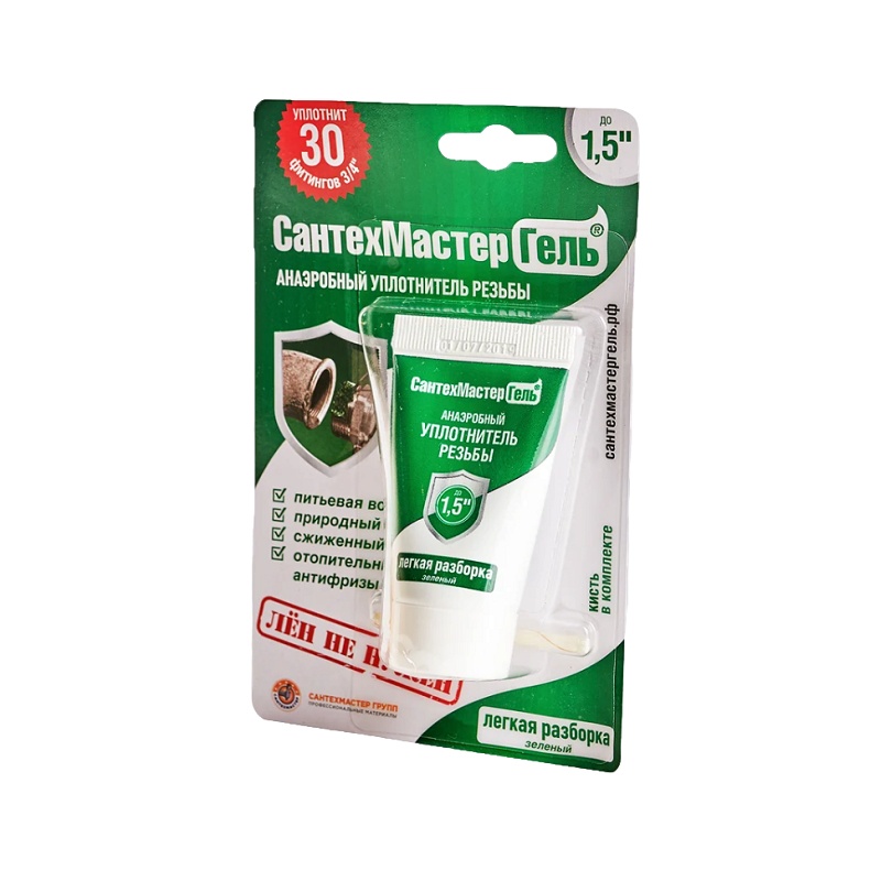 Анаэробный клей-герметик Сантехмастергель до 1 1/2" зеленый, 15 гр