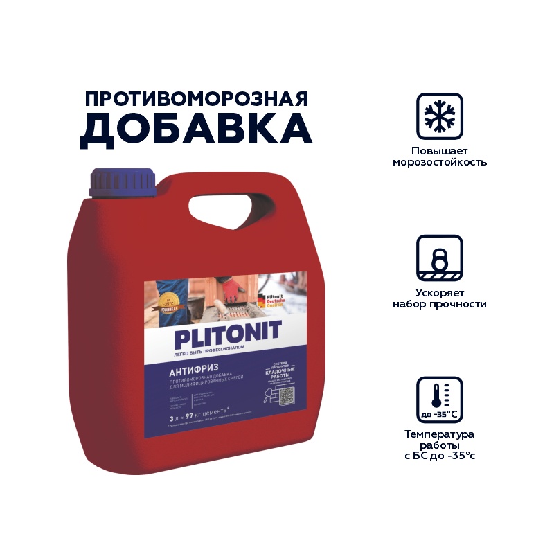 Антифриз добавка для бетонных растворов Plitonit до -35°С, 3 л