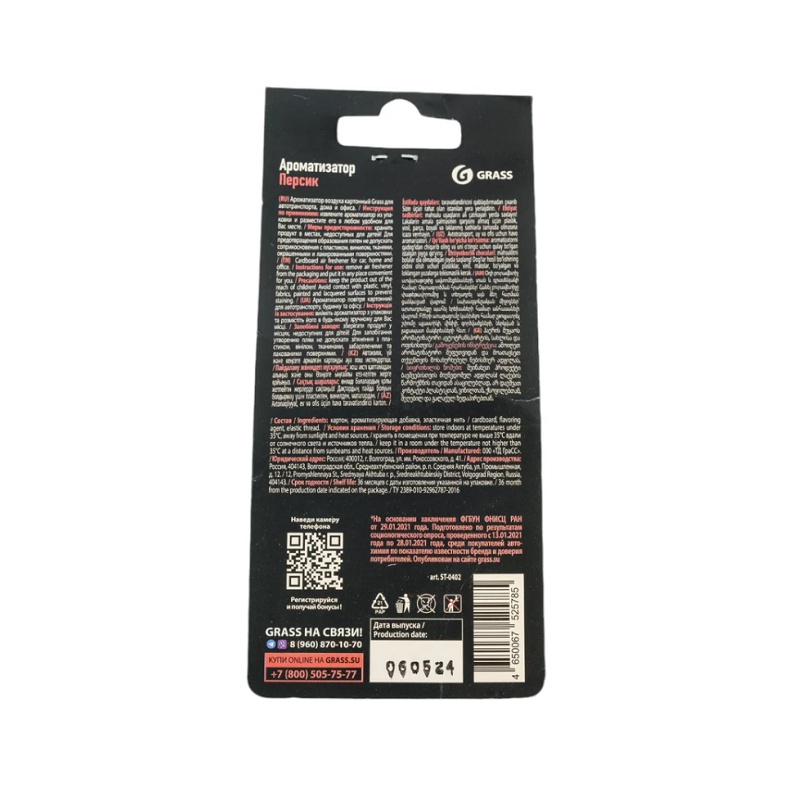 Ароматизатор картонный Grass, персик