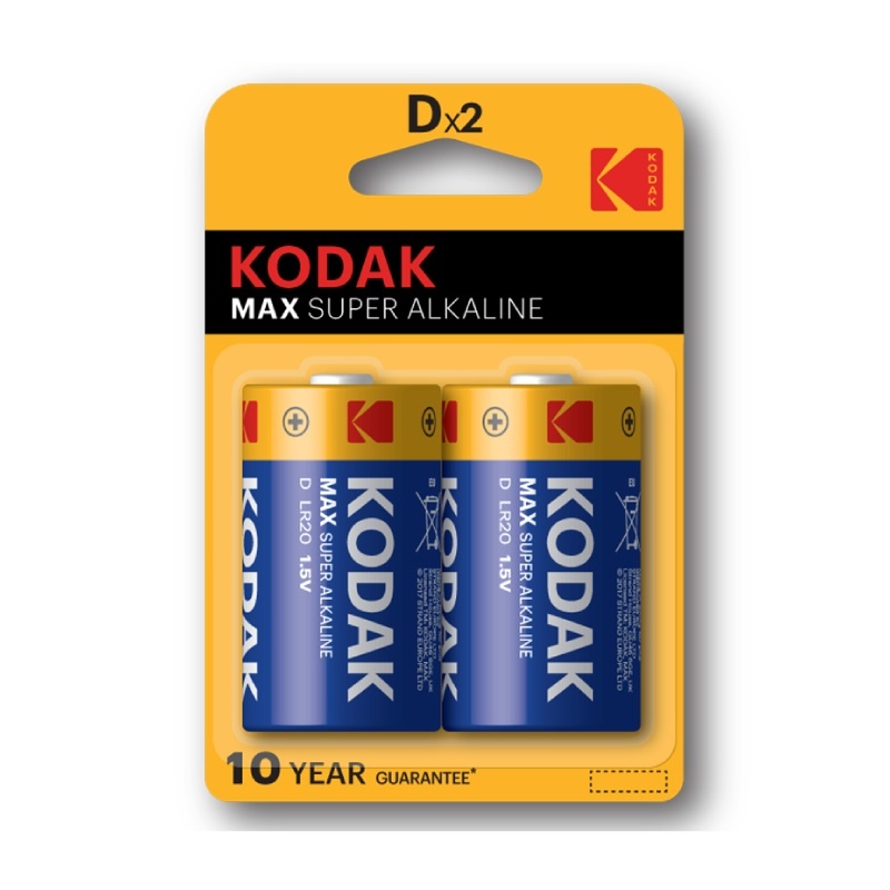 Батарейка алкалиновая Kodak, тип LR20/D, 1,5В (2 шт)