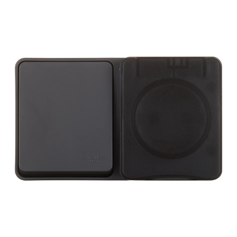 Блок БКВР с/у Atlasdesign Profi ATN544070, 1 клавиша + 1 гнездо с/з, з/ш и крышкой, IP54, антрацит