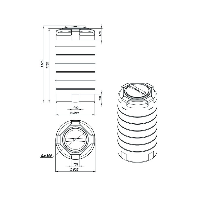 Емкость ЭкоПром для воды полиэтиленовая 300 л (0,3 м3) вертикальная