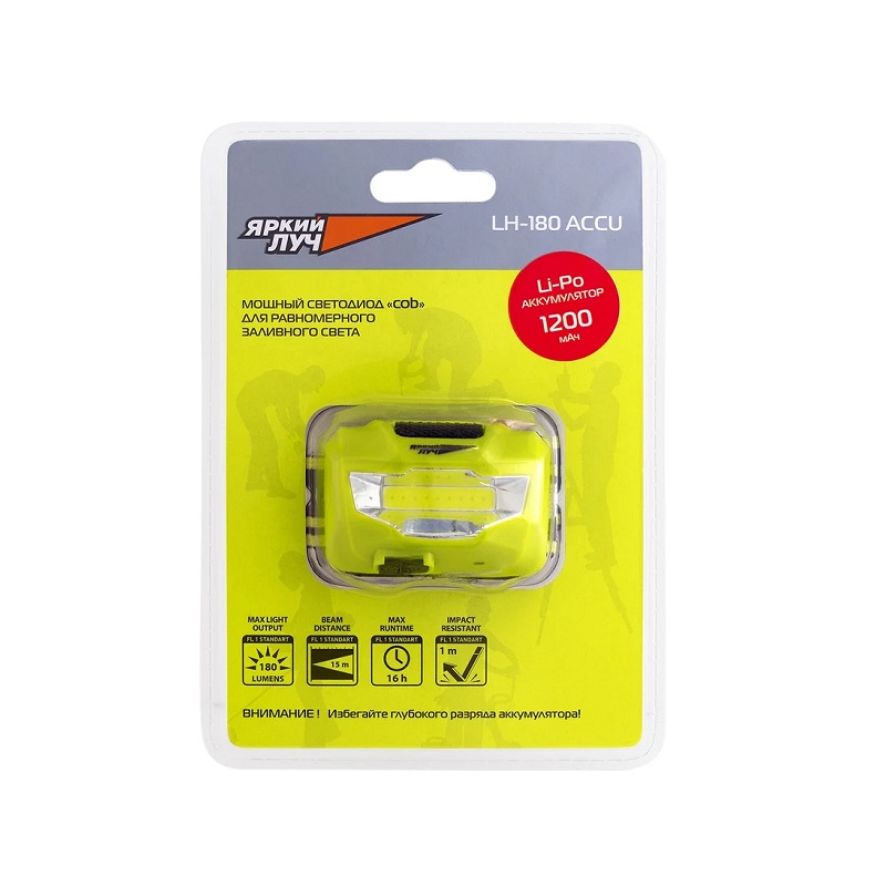 Фонарь Яркий Луч аккумуляторный налобный, LH-180 ACCU, LED 3Вт, 2 режима