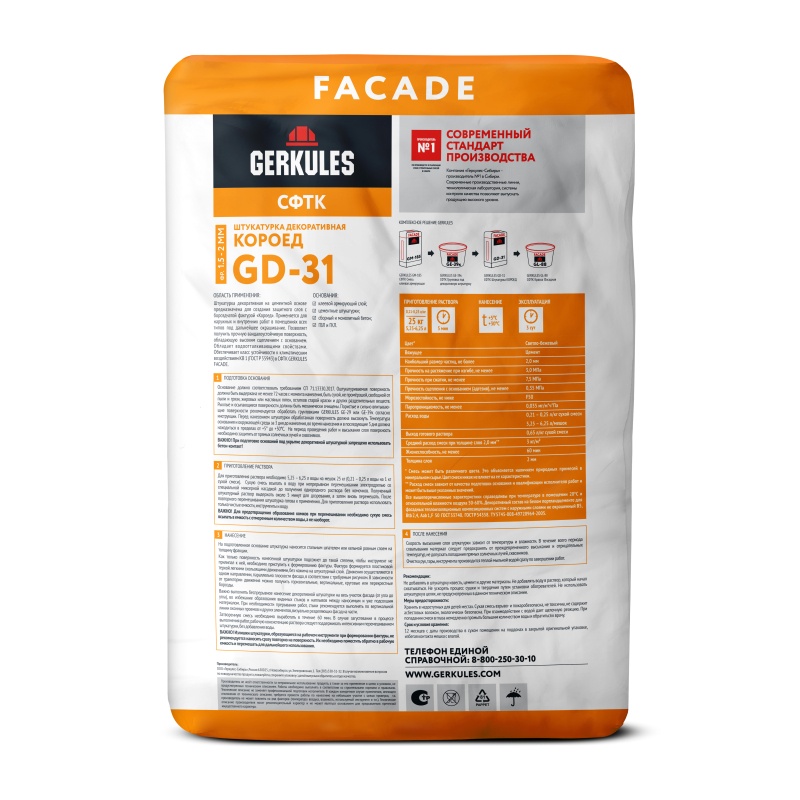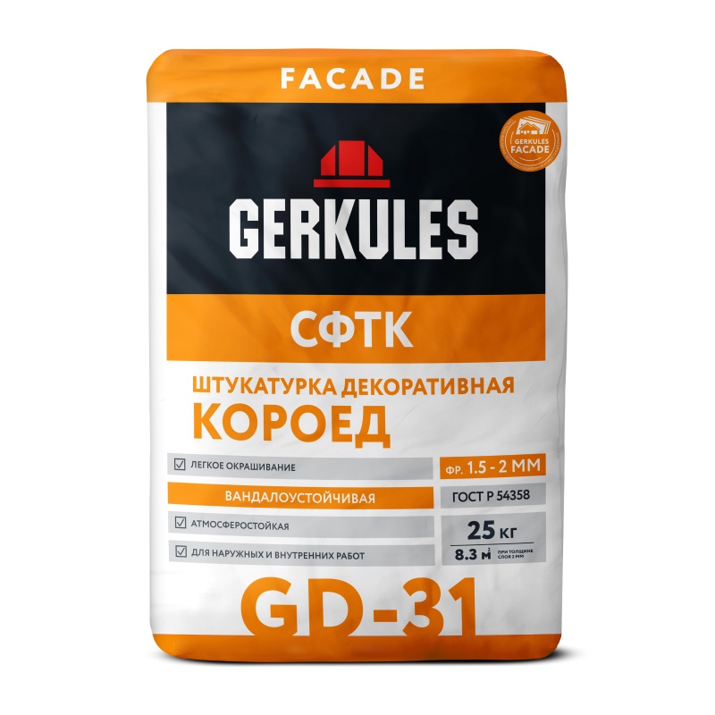 Штукатурка Gerkules Короед GD-31 зерно 1,5-2,0 мм, 25 кг