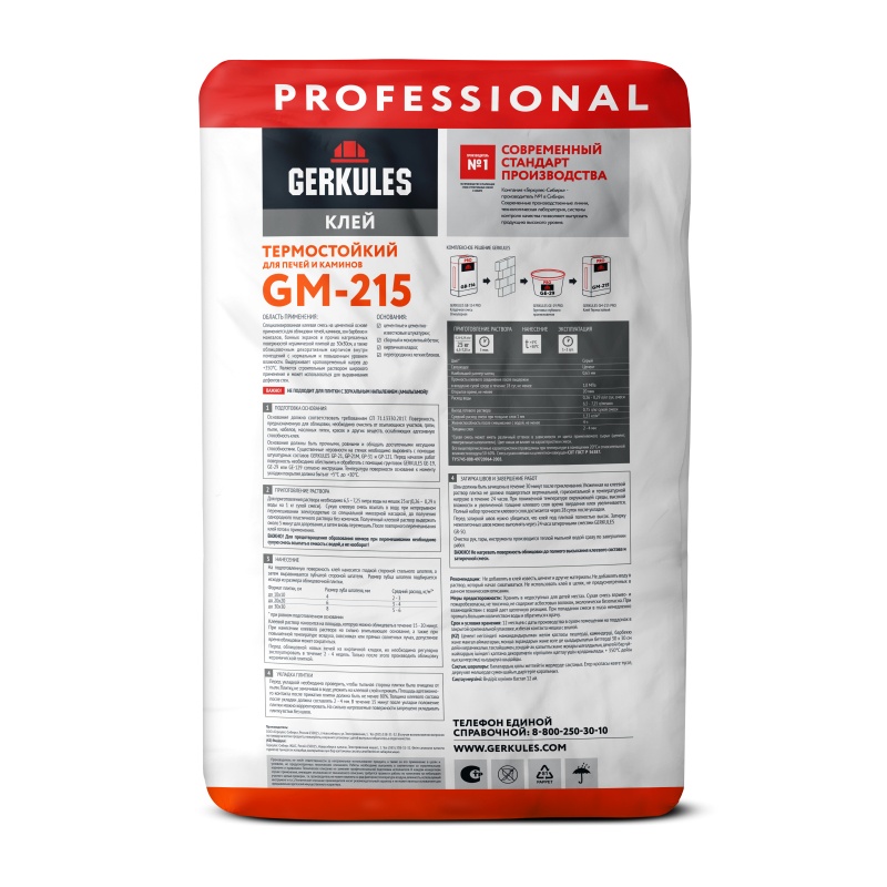 Клей термостойкий для печей и каминов Gerkules GM-215, 25 кг