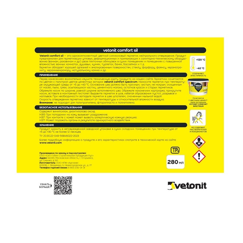 Важно! Герметик Vetonit Comfort Sil обладает усиленным противогрибковым действием, содержит фунгицид, поэтому не подходит для герметизации аквариумов.