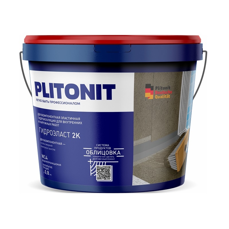 Гидроизоляция эластичная двухкомпонентная Plitonit ГидроЭласт 2K, ведро, 12,5 кг + 4 л