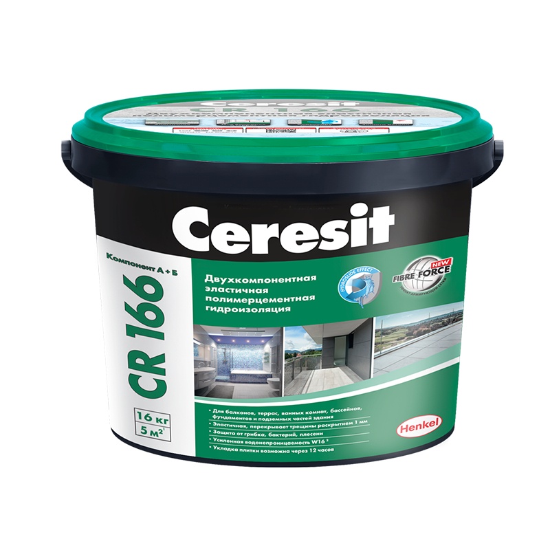 Гидроизоляция полимерцементная Церезит CR 166, 16 кг
