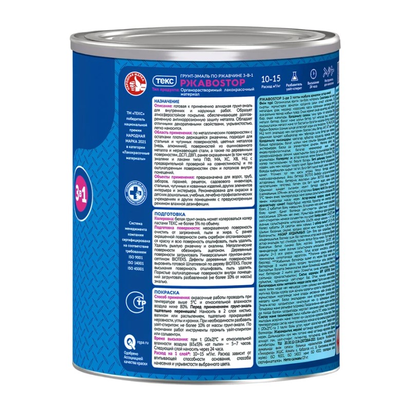 Грунт-эмаль по ржавчине Текс РжавоStop желтый (0,9 кг)