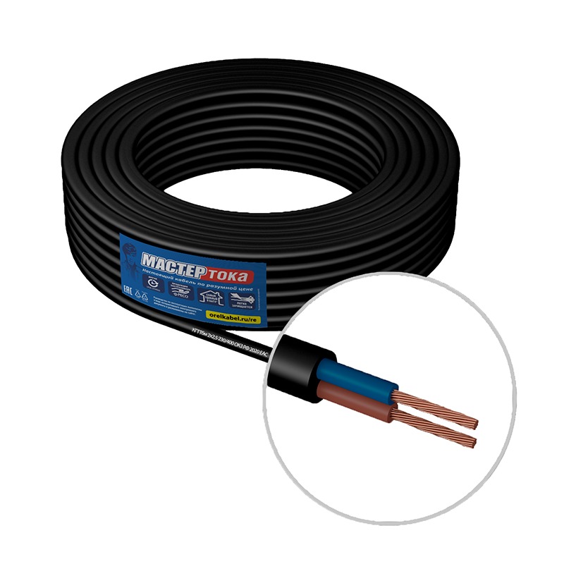 Кабель КГмб 2х2,5 мм2, гибкий, резиновая изоляция, черный, 1 п.м.