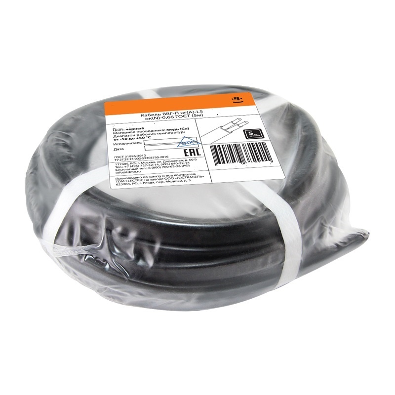 Кабель ВВГ-Пнг(А)-LS 2х1,5мм2, черный (бухта-5 п.м.) ГОСТ 31996-2012