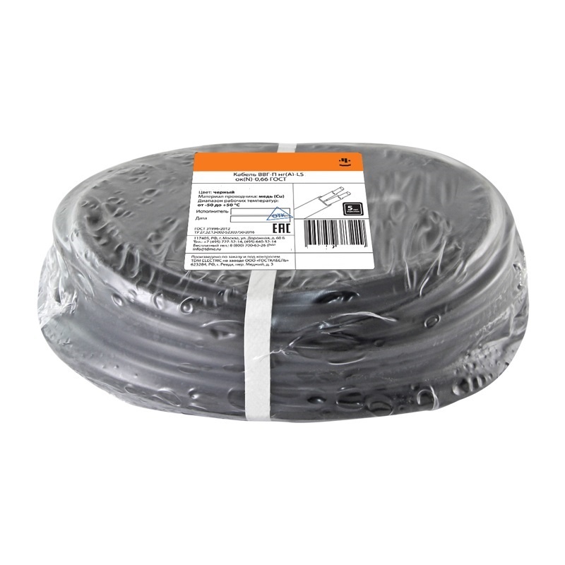 Кабель ВВГ-Пнг(А)-LS 2х2,5мм2, черный (бухта-10 п.м.) ГОСТ 31996-2012