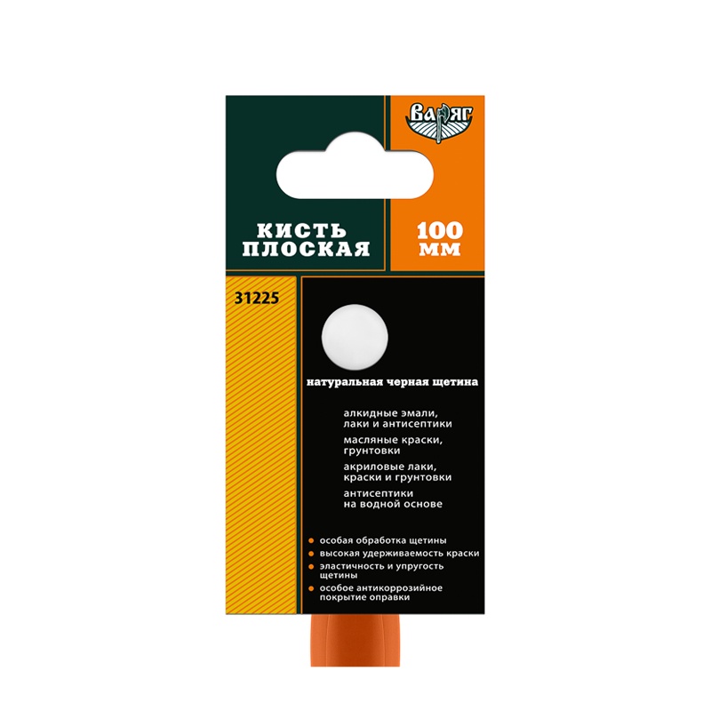Кисть плоская ВАРЯГ 31225 черная щетина 100 мм
