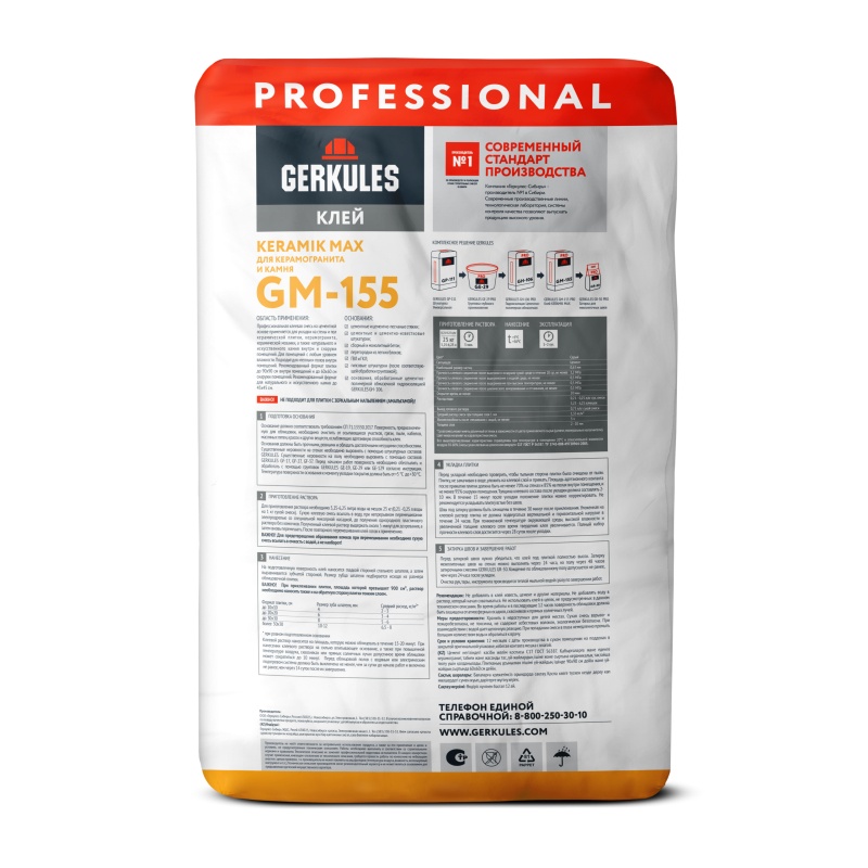 Клей для плитки и керамогранита Gerkules GM-155 Keramik Max Pro (25 кг)