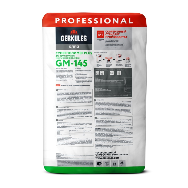 Клей для плитки и керамогранита Gerkules GM-145 Суперполимер Plus Pro (25 кг)