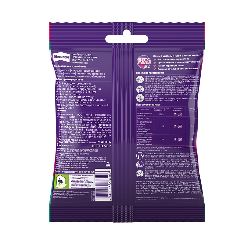 Клей для обоев Metylan Флизелин Экстра Комфорт с индикатором (90 г)