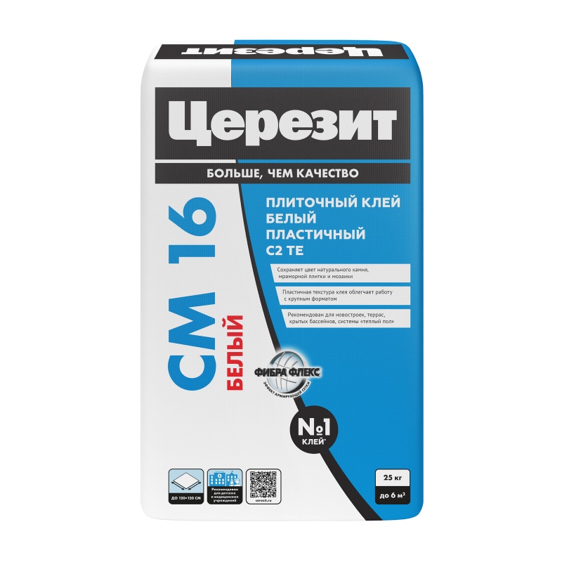 Клей для плитки Церезит CM 16, белый, пластичный (25 кг)