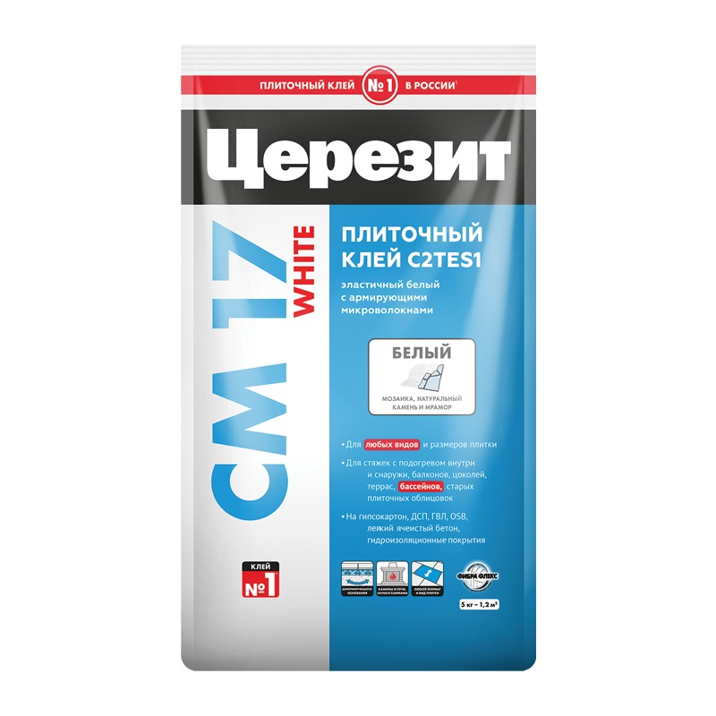 Клей для природного камня, мрамора и мозаики Церезит CM 17 White (5 кг)