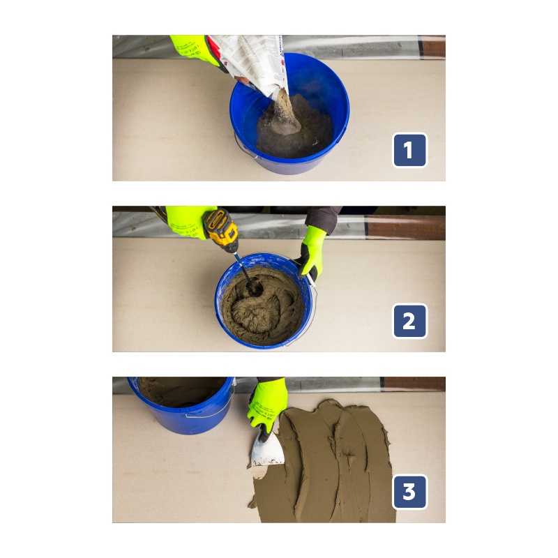 Предназначен для приклеивания керамики, керамогранита. Класс С1Т. Подходит для облицовки внутри и снаружи помещения.