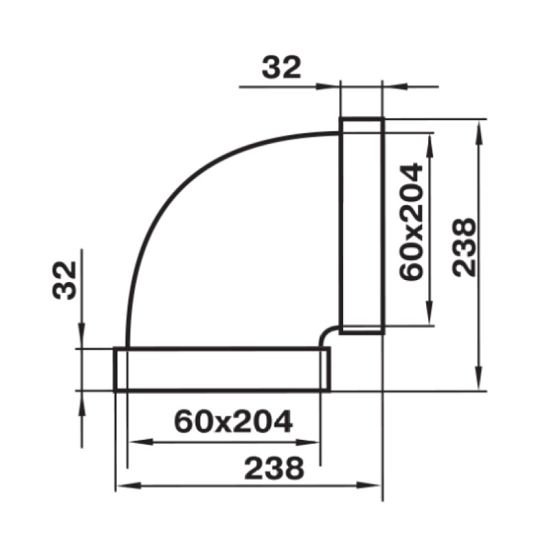 Колено горизонтальное Наш Вент 8281, 90 градусов, 204х60 мм