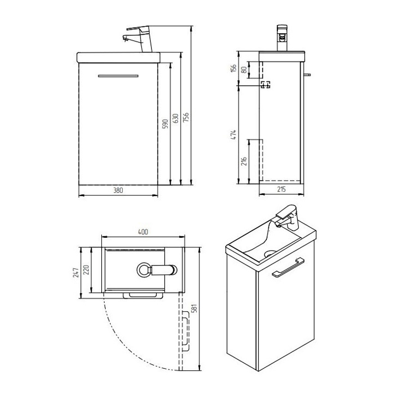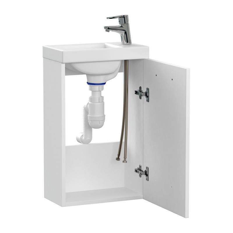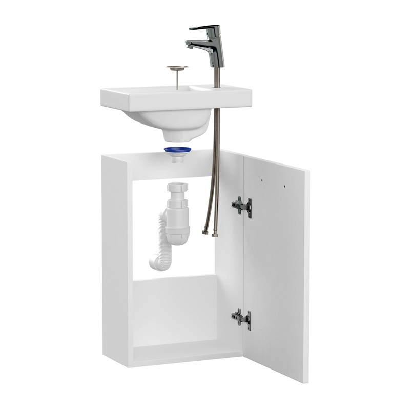 Комплектация: тумба, раковина, смеситель, сифон, кольцо перелива, подводка для воды, крепеж смесителя, ручка для тумбы, гарантийный талон, инструкция по эксплуатации