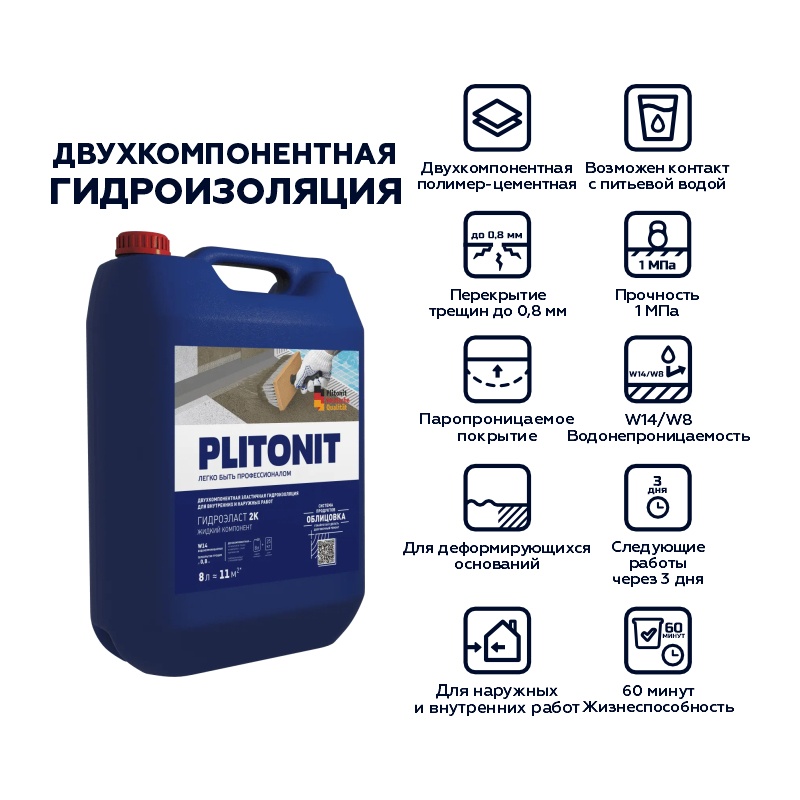 Компонент жидкий Plitonit Аквабарьер ГидроЭласт 2К, 8 л