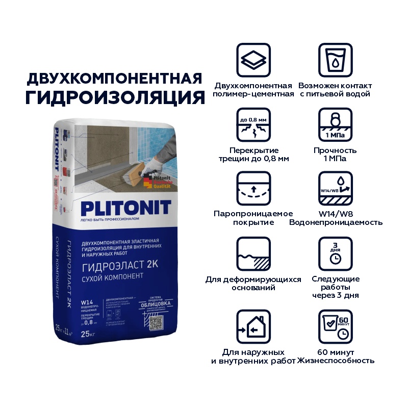 Компонент сухой Plitonit Аквабарьер ГидроЭласт 2К, 25 кг