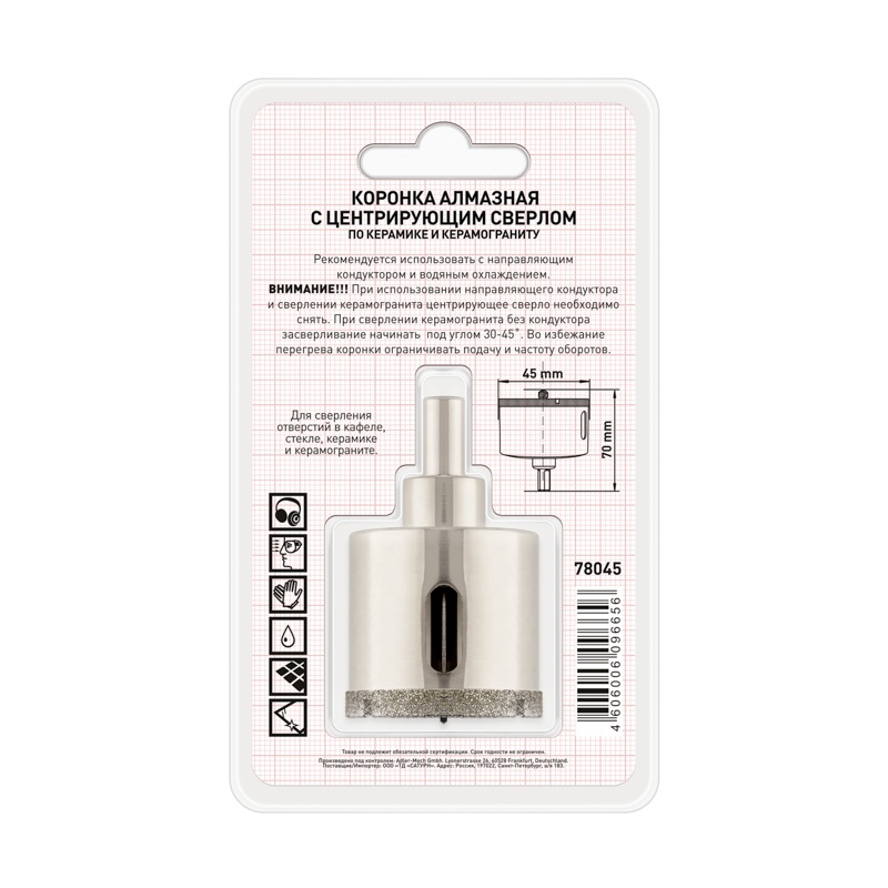 В строительном магазине Сатурн можно купить товар "Коронка алмазная Trigger 78045 45х70мм" по цене от 1536 руб с доставкой за 2 часа по Волгограду или оформить самовывоз.