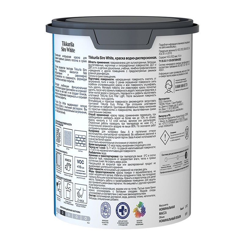 Краска для потолка Tikkurila/Tikkivala Siro White основа А глубокоматовая (0,9 л)