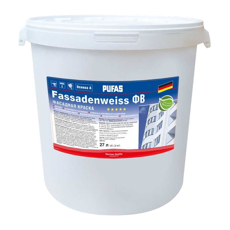 Краска фасадная Pufas Fassadenweiss основа A морозостойкая (27 л)