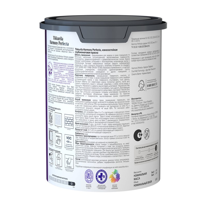 Краска интерьерная Tikkurila/Tikkivala Perfecta основа С глубоко матовая (0,9 л)
