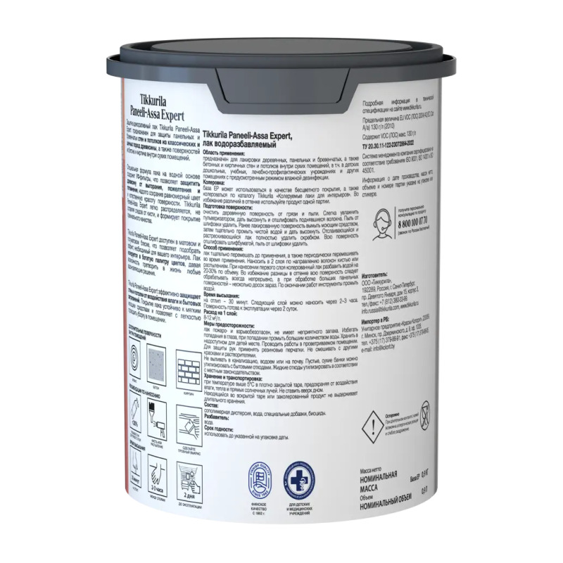 Лак в/д интерьерный для стен Tikkurila/Tikkivala Panelli-Assa Expert ЕР мат. (0,9 л)