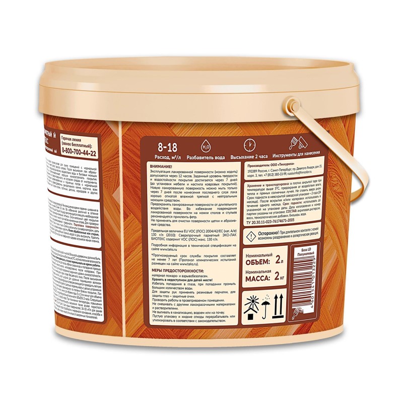Эко-Лак водоразбавляемый паркетный Текс Биотекс, полуматовый (2 л)