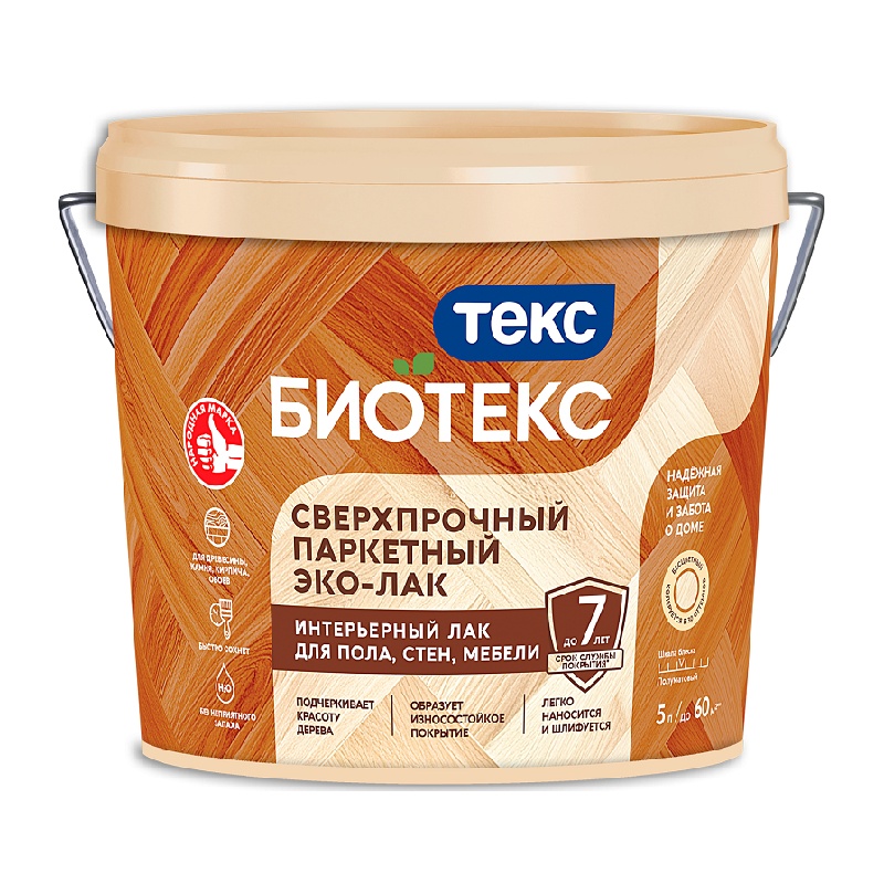 Эко-Лак водоразбавляемый паркетный Текс Биотекс, полуматовый (5 л)