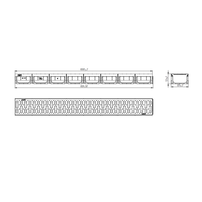 Лоток водоотводный в сборе с решеткой Standartpark 0881011 1000х125х70 мм