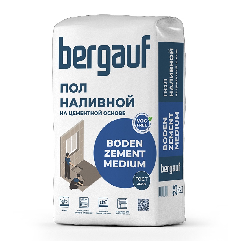 Наливной пол на цементной основе Bergauf Boden Zement Medium, 25 кг
