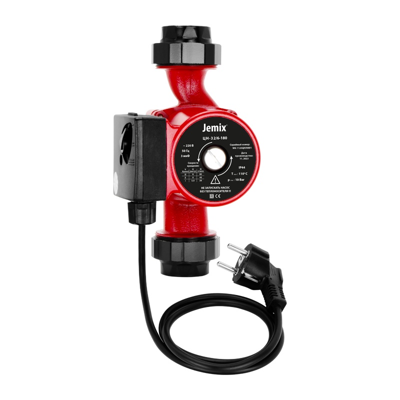 Насос циркуляционный Jemix 3 скорости, 32/6-180мм с гайками, t=110C