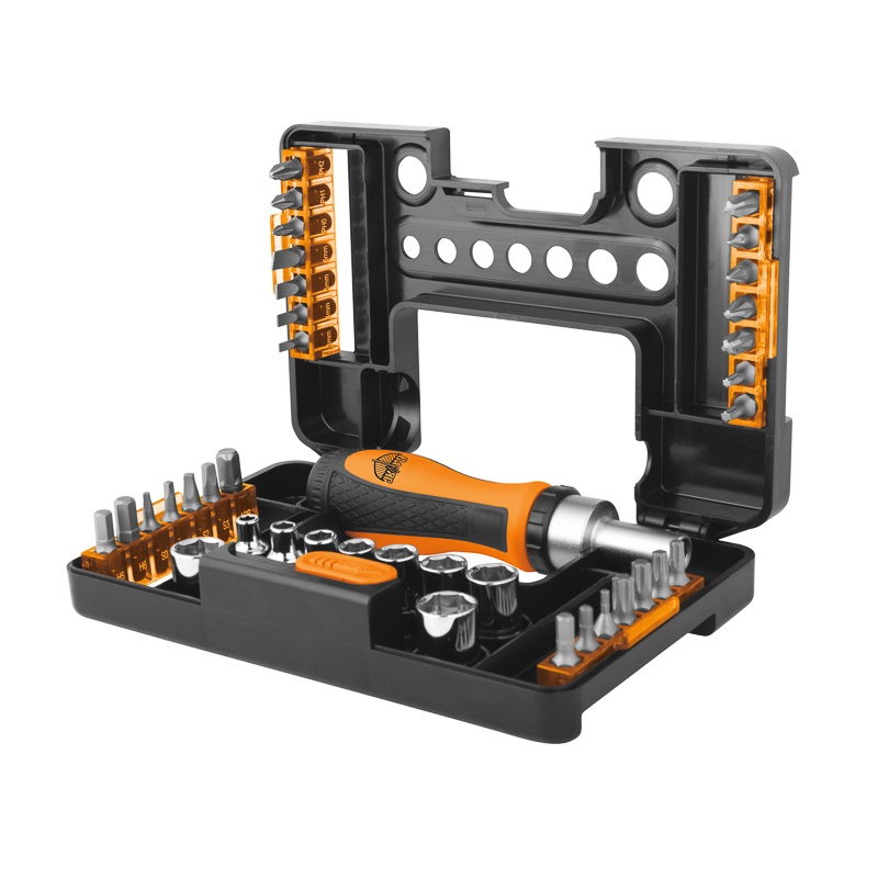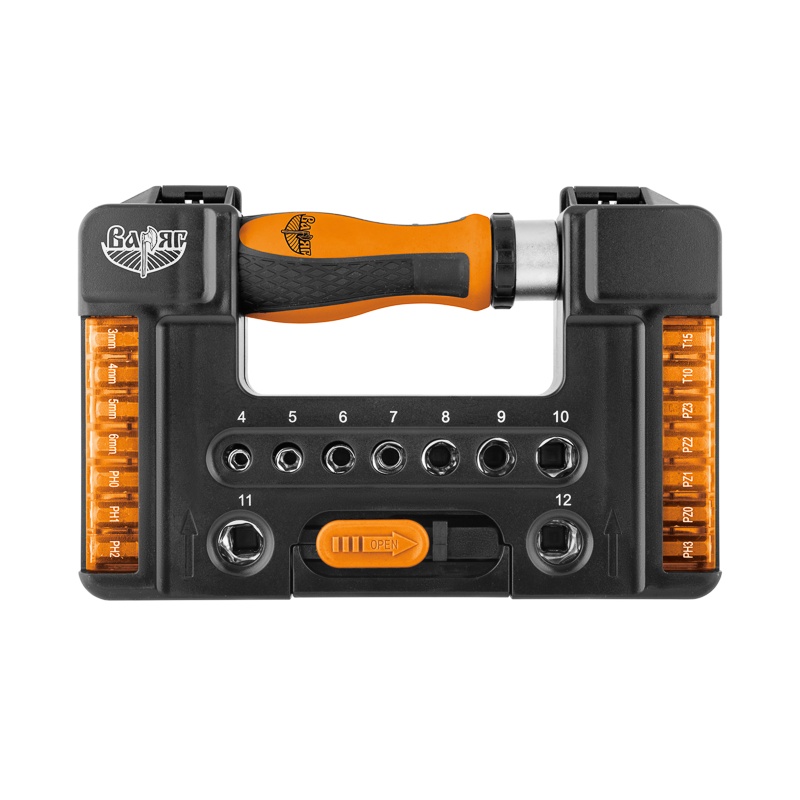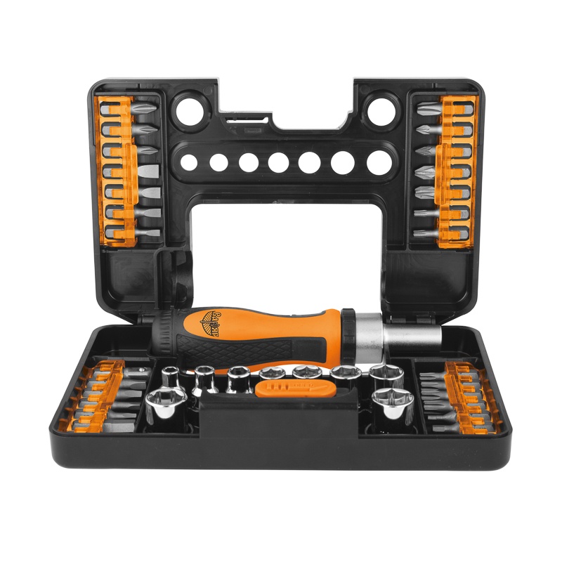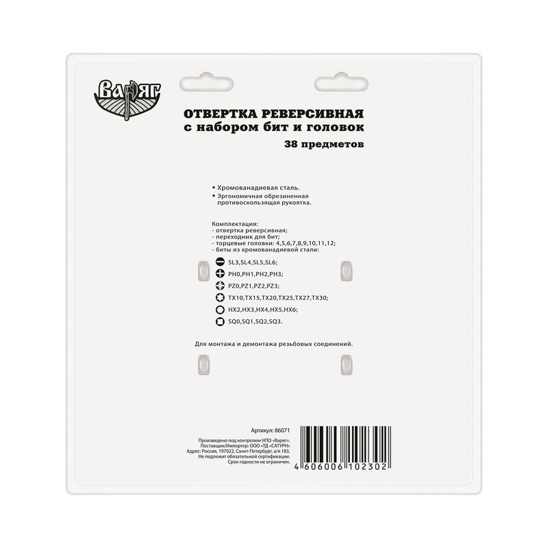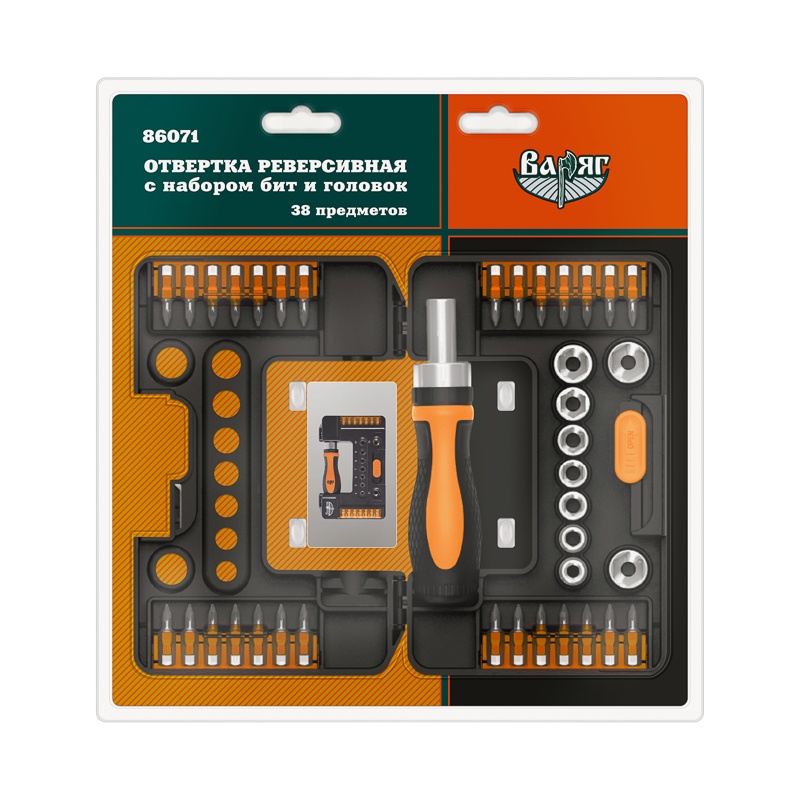 В строительном магазине Сатурн можно купить товар "Отвертка реверсивная Варяг 86071 с набором бит и головок (38 предметов)" по цене от 1518 руб с доставкой за 2 часа по Волгограду или оформить самовывоз.