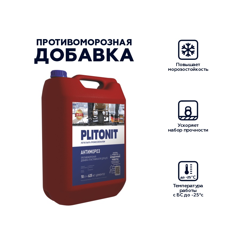 Добавка д/бетонных смесей Plitonit АнтиМороз пластифицирующая до -25°С, 10 л