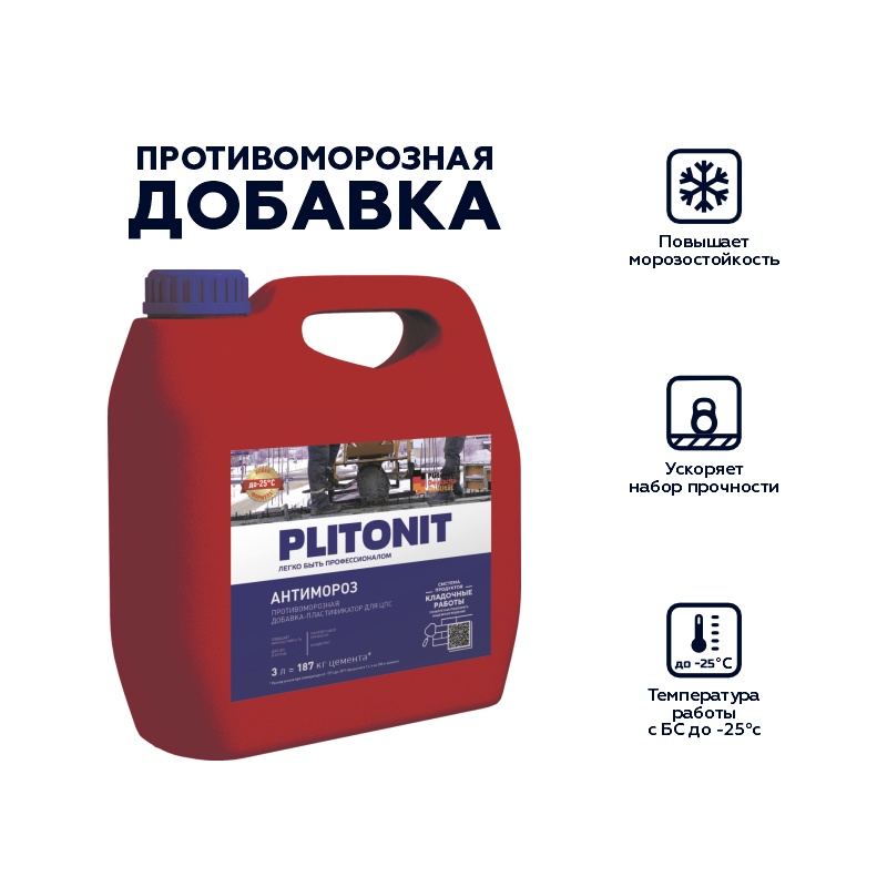 Добавка д/бетонных смесей Plitonit АнтиМороз пластифицирующая до -25°С, 3 л