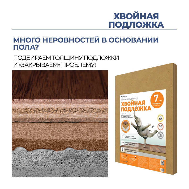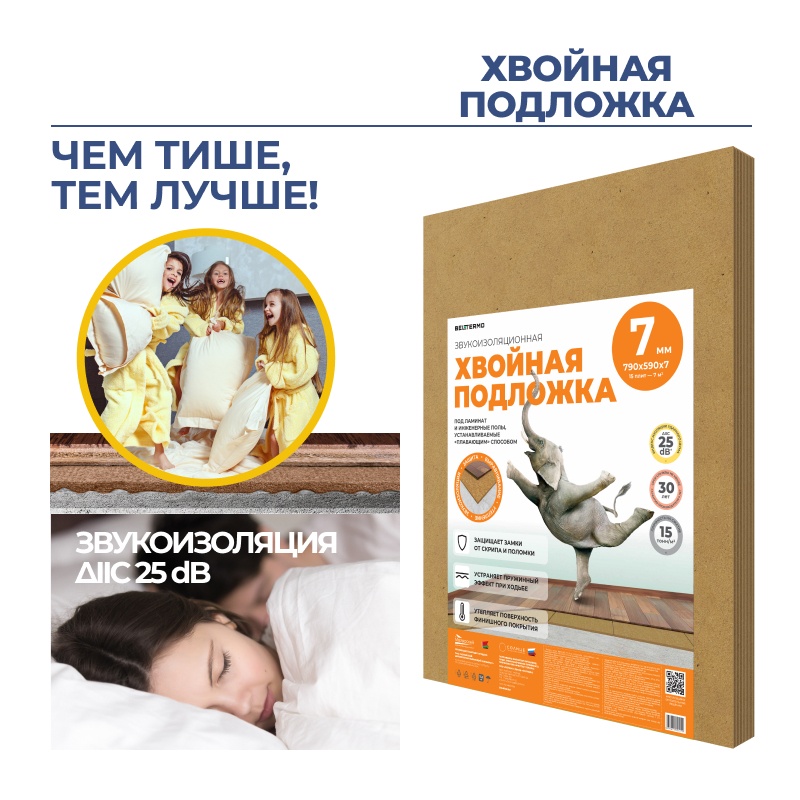 Подложка хвойная Beltermo790х590х7 мм (уп.15 шт) (7 м2)