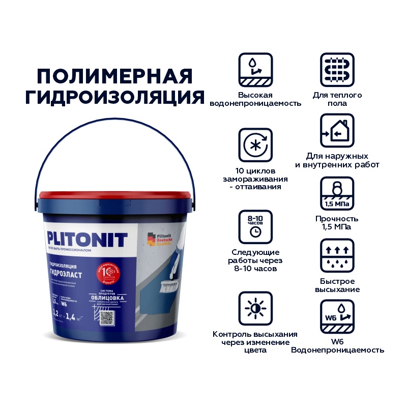 Полимерная эластичная гидроизоляция Plitonit ГидроЭласт (1,2 кг)