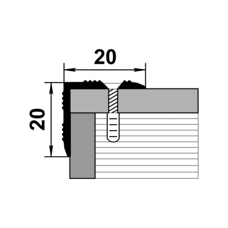 Порог угловой Лука ПУ 05-900-01п, серебро (0,9 м х 20 мм х 20 мм)