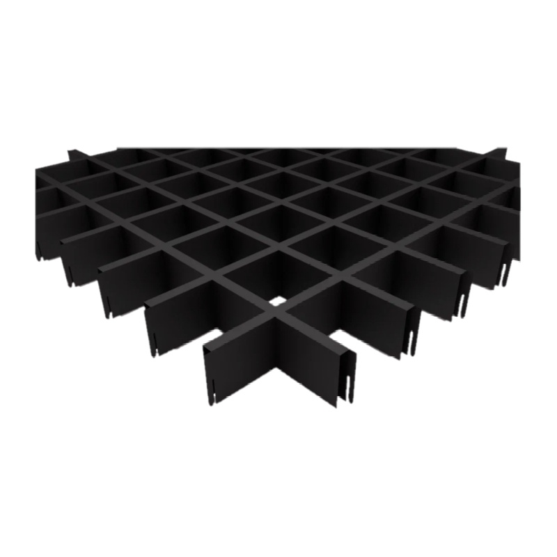 Потолок Грильято состоит из каркаса несущих направляющих и решетчатых модулей. Каждый модуль собран из элементов "мама" и "папа". Элементы “мама” и “папа”, образующие модуль, размещаются взаимно перпендикулярно, образуя ячейки решетки. Решетчатые модули устанавливаются в подвесной каркас из несущих направляющих.