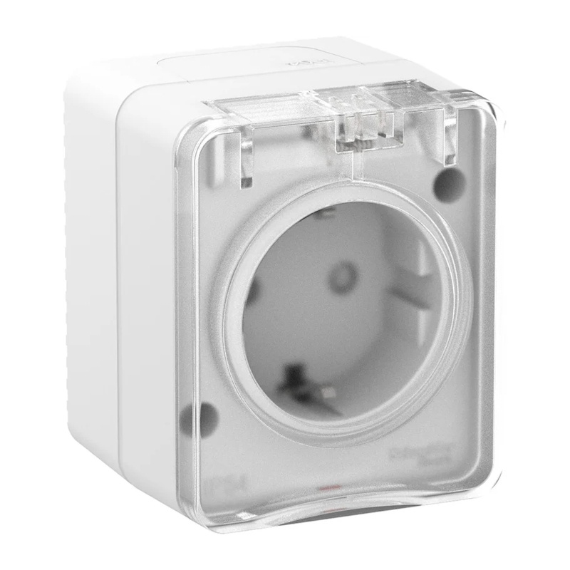 Розетка о/у Atlasdesign Profi ATN540145, 1 гнездо, с/з, з/ш и крышкой, IP54, белая