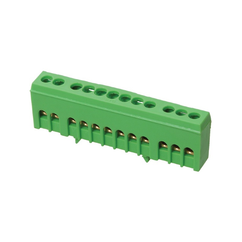 Шина "N" нулевая в изол. оболочке на DIN-рейку 100А, 6х9мм (12 отв.)