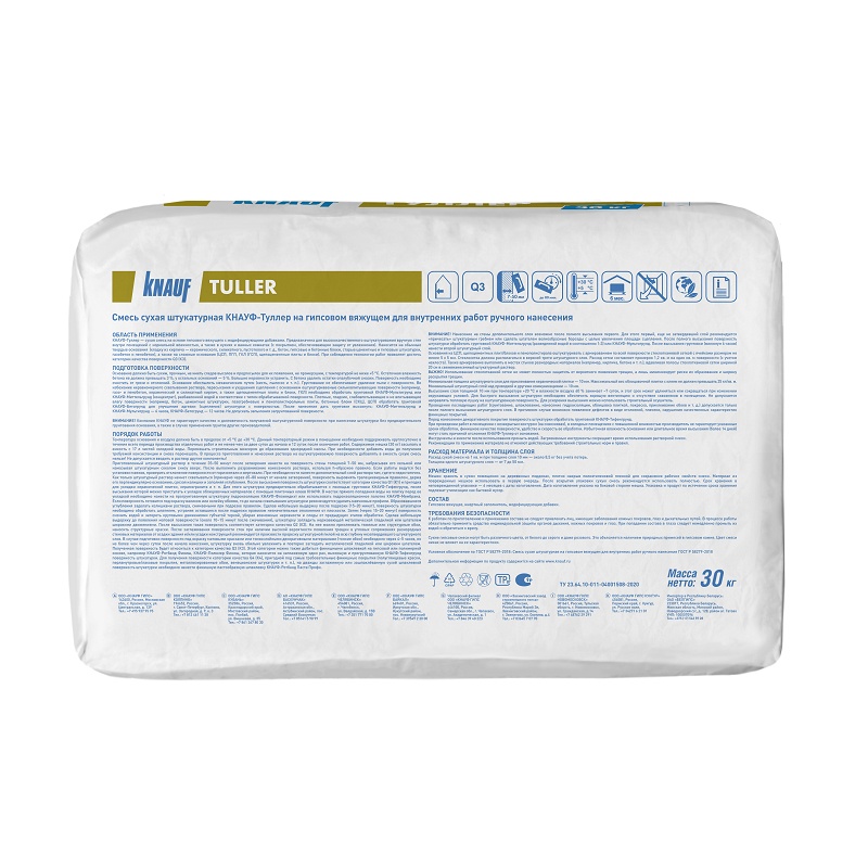 Штукатурка гипсовая Knauf Tuller эластичная для внутренних работ, 30 кг