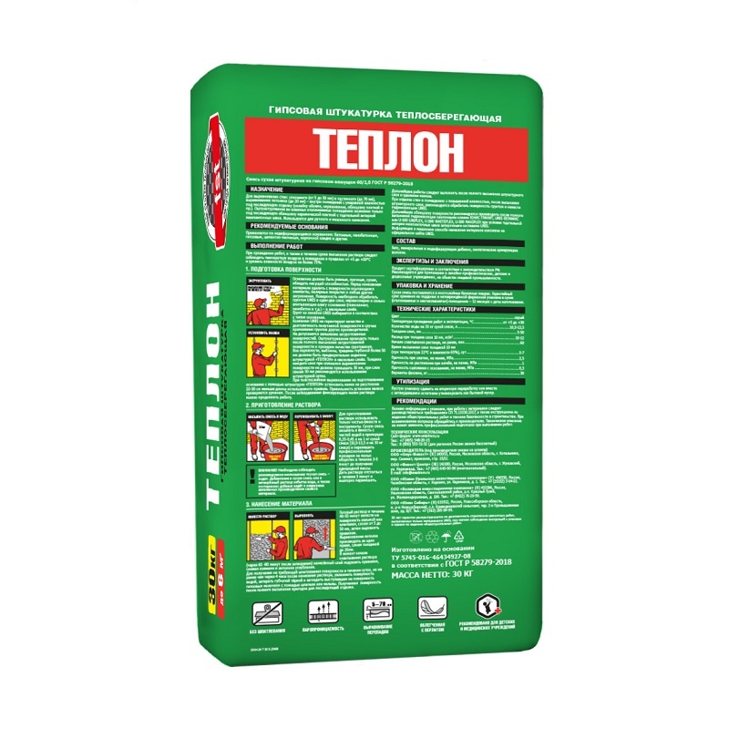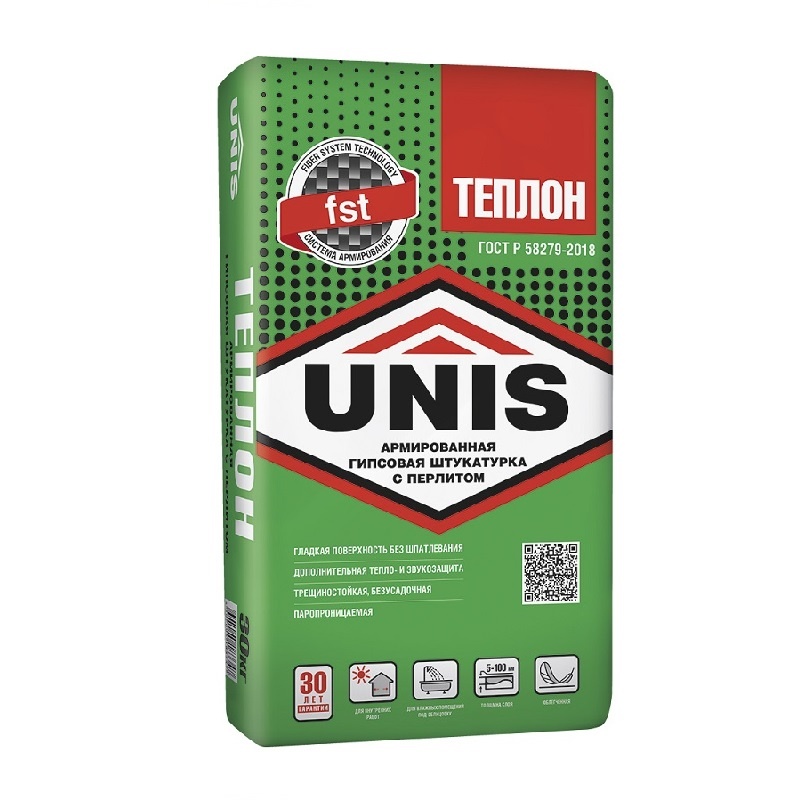 Теплосберегающая армированная гипсовая штукатурка Unis Теплон армированный, 30 кг предназначена для выравнивания стен и потолков внутри помещений с умеренной влажностью. Она подходит для сплошного выравнивания стен с толщиной слоя от 5 до 50 мм и частичного выравнивания до 100 мм, а также для выравнивания потолков до 20 мм. Штукатурка идеально подходит под последующую отделку, включая оклейку обоями, окрашивание и облицовку плиткой. Оштукатуривание во влажных отапливаемых помещениях возможно только под плитку с тщательной затиркой межплиточных швов. Применяется как для ручного, так и для машинного нанесения.