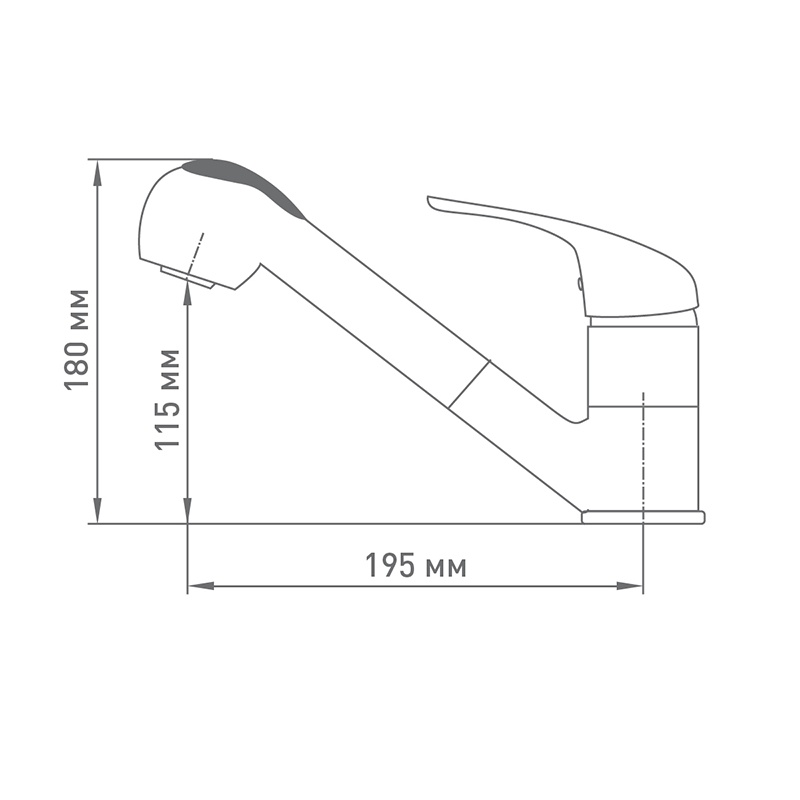 • Высота излива - 11,5 см, длина излива - 19,5 см.
