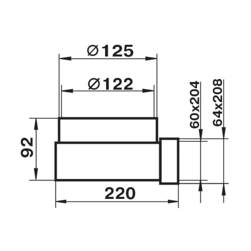 Колено соединительное Наш Вент 822, d=125 мм, 204х60 мм
